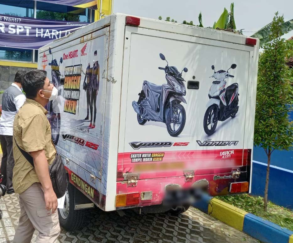 Kepala Seksi Penagihan Sumarso dan Juru Sita KPP Pratama Ngawi melakukan penyitaan atas aset berupa satu unit mobil Daihatsu Grand Max.