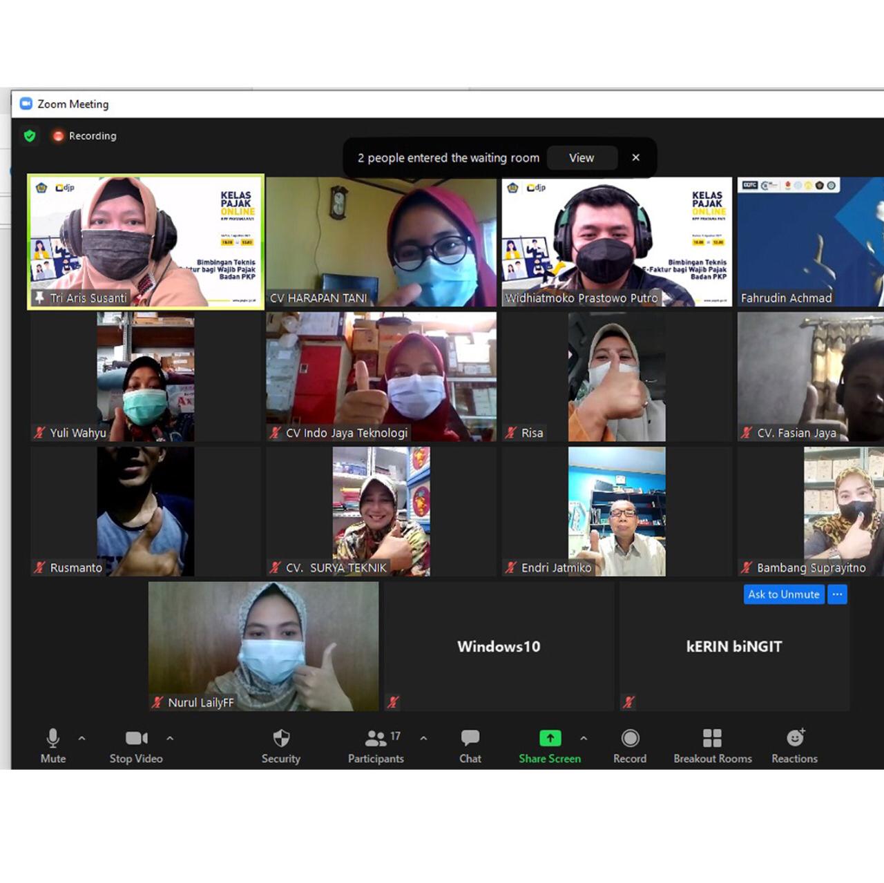 Tim Penyuluh Kantor Pelayanan Pajak (KPP) Pratama Pati melaksanakan Kelas Pajak dengan mengusung tema “Bimbingan Teknis e-Faktur bagi Wajib Pajak Badan PKP” yang diikuti oleh 19 pengurus Persekutuan Komanditer (CV) dan dilangsungkan secara daring melalui aplikasi Zoom Meeting di Pati (Kamis, 5/8)