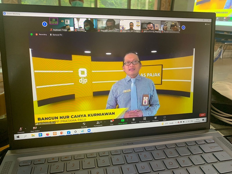 Kantor Pelayanan Pajak (KPP) Pratama Palu mengadakan kegiatan edukasi Elektronik Bukti Potong (e-Bupot) Surat Pemberitahuan (SPT) Masa Unifikasi dan SPT Masa PPh Pasal 21 bagi bendahara Instansi Vertikal Pemerintah secara daring melalui aplikasi Zoom Mmeeting di Kota Palu (Kamis, 23/9).