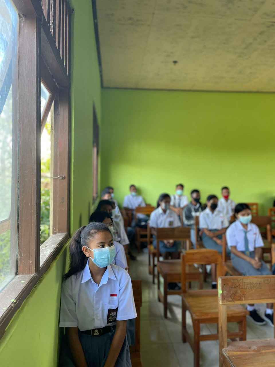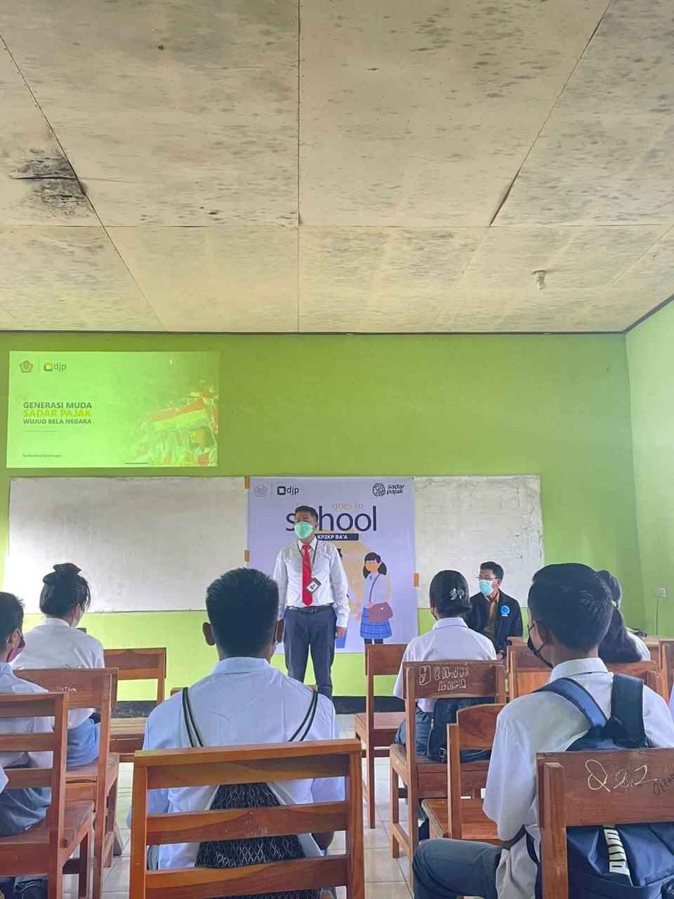 Kepala Kantor Pelayanan Penyuluhan dan Konsultasi Perpajakan (KP2KP) Baa Moh. Rasyid Ridho beserta para pegawai KP2KP melaksanakan salah satu agenda tahunan Direktorat Jenderal Pajak (DJP) Tax Goes to School di Sekolah Menengah Kejuruan Swasta (SMKS) Lembang, Kabupaten Rote Ndao (Senin, 23/8).