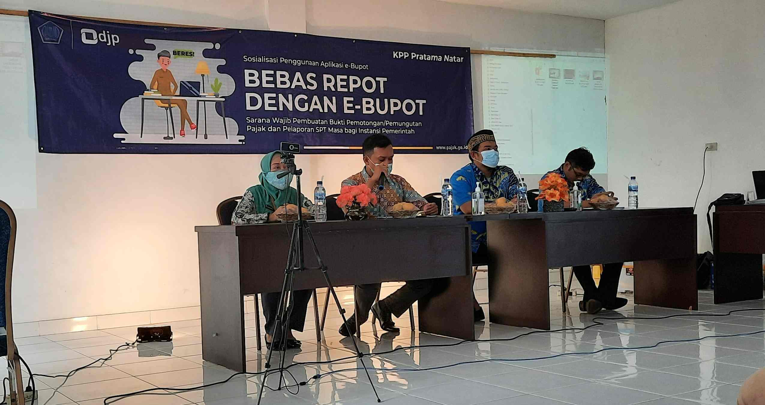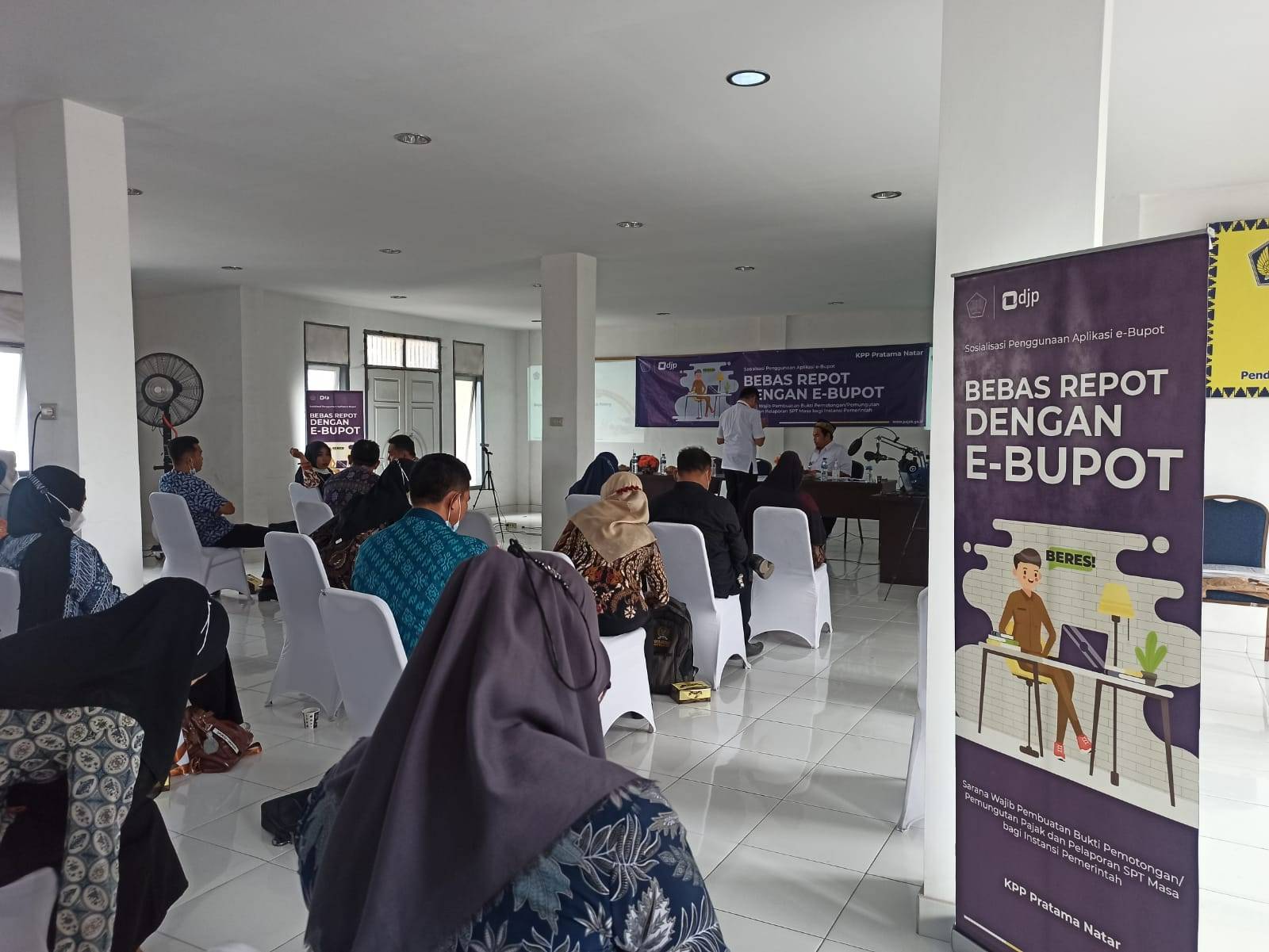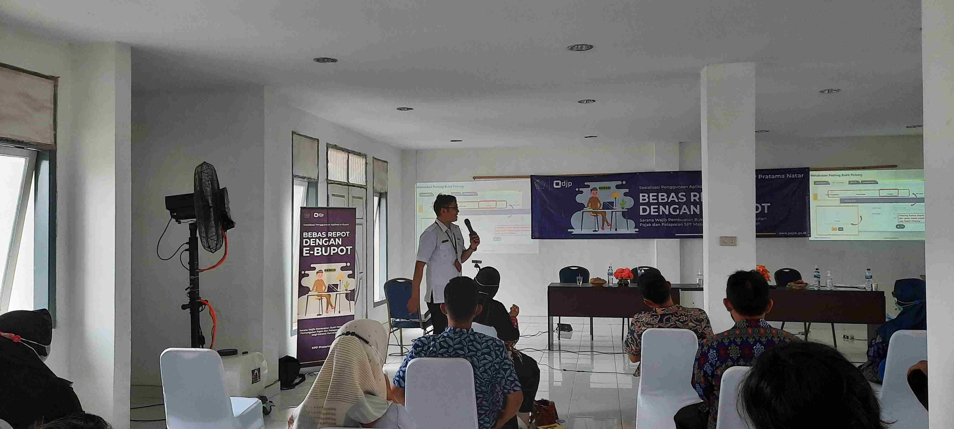 Kantor Pelayanan Pajak (KPP) Pratama Natar bersama Kantor Pelayanan, Penyuluhan dan Konsultasi Perpajakan (KP2KP) Pringsewu melalui Badan Pengelolaan Keuangan dan Arsip Daerah (BPKAD) Kabupaten Pringsewu menyelenggarakan Sosialisasi Penggunaan Aplikasi e-Bupot bagi Instansi Pemerintah Daerah dan Desa di Kabupaten Pringsewu secara luring di Aula KP2KP Pringsewu, Kabupaten Pringsewu (Kamis, 28/10).