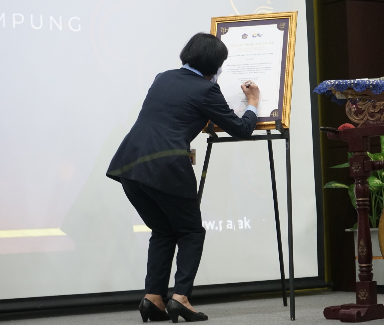 Puncak acara pencanangan ZI-WBK ditandai dengan pemukulan gong serta pembacaan dan penandatanganan pakta integritas dan komitmen pimpinan oleh Kepala KPP Madya Bandar Lampung. Tak hanya mendapat dukungan dari pemangku kepentingan dan wajib pajak, Kepala Kanwil DJP Bengkulu dan Lampung Tri Bowo juga memberikan dukungan kepada KPP Madya Bandar Lampung dalam pelaksanaan pembangunan ZI-WBK.
