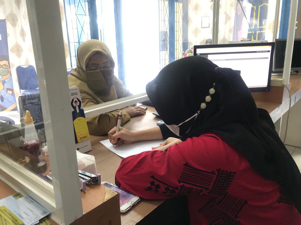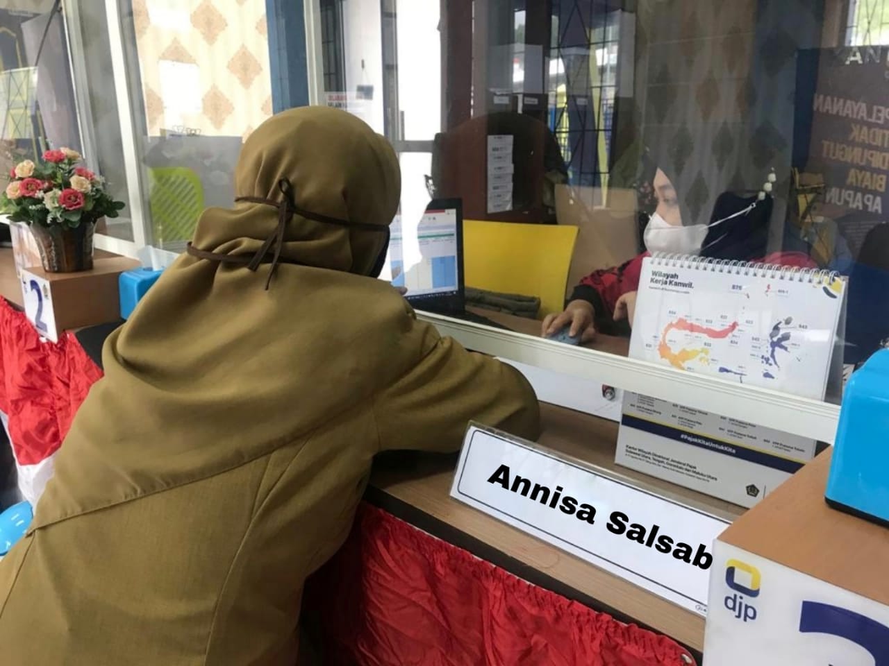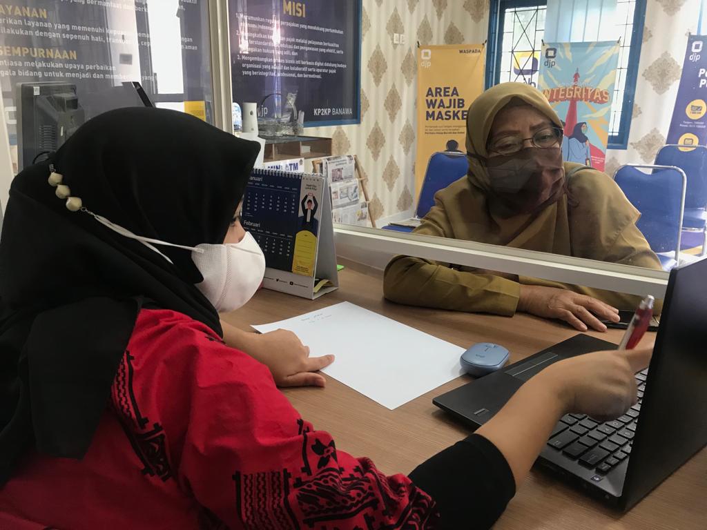 Annisa Salsabila sebagai petugas loket layanan KP2KP Banawa memberikan asistensi kepada Bendahara Dinas Lingkungan Hidup (DLH) Wahyuni dalam pembuatan bukti potong 1721-A2. Selain itu, Annisa juga memberikan penjelasan terkait penghitungan pajak penghasilan maupun biaya jabatan.