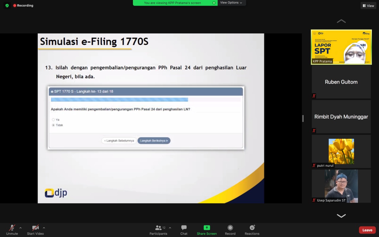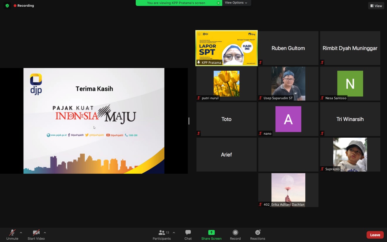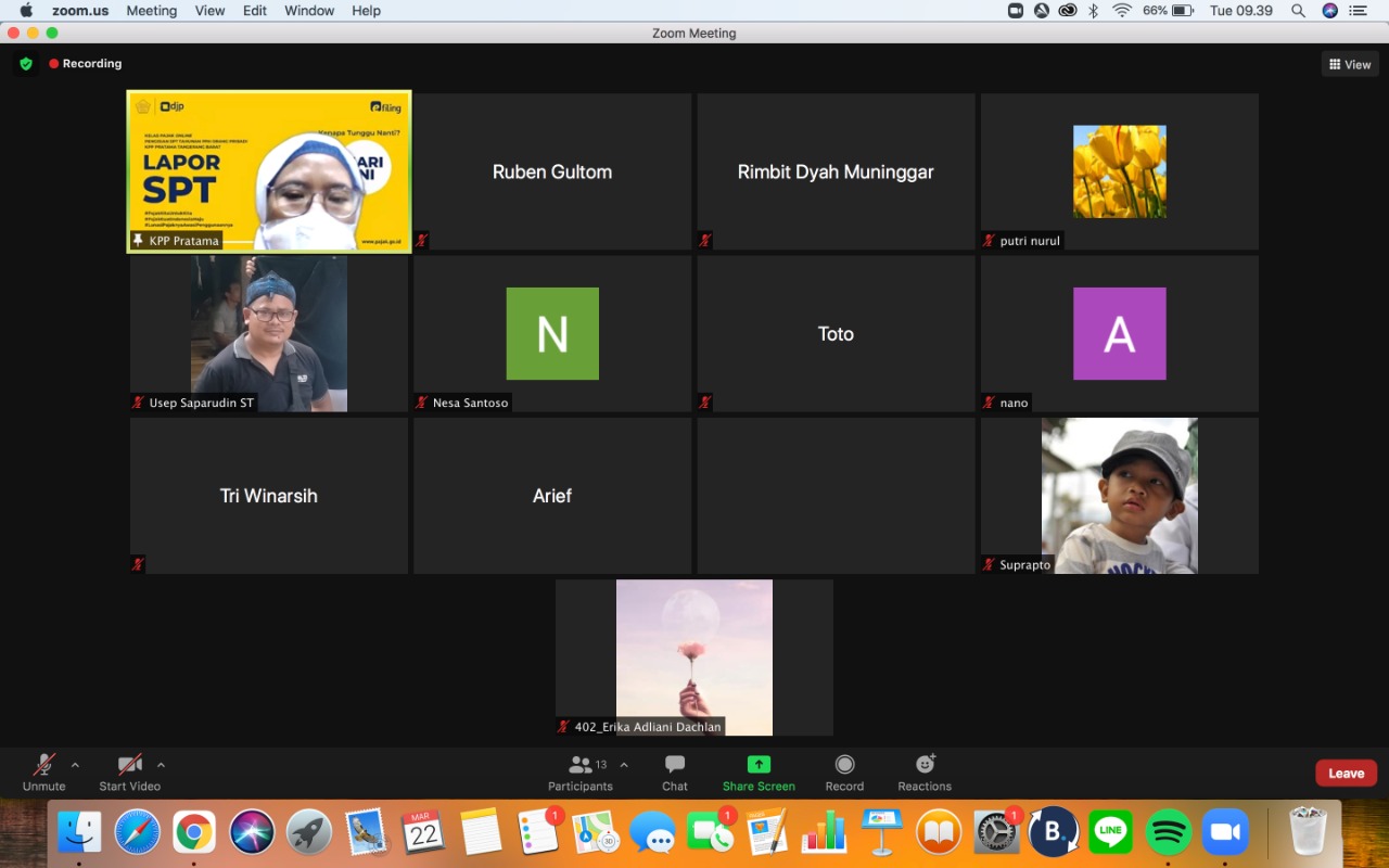 Kantor Pelayanan Pajak (KPP) Pratama Tangerang Barat mengadakan Kelas Pajak Tata Cara Pengisian Surat Pemberitahuan (SPT) Tahunan Orang Pribadi melalui zoom cloud meeting KPP Pratama Tangerang Barat, Kota Tangerang (Selasa, 22/3).