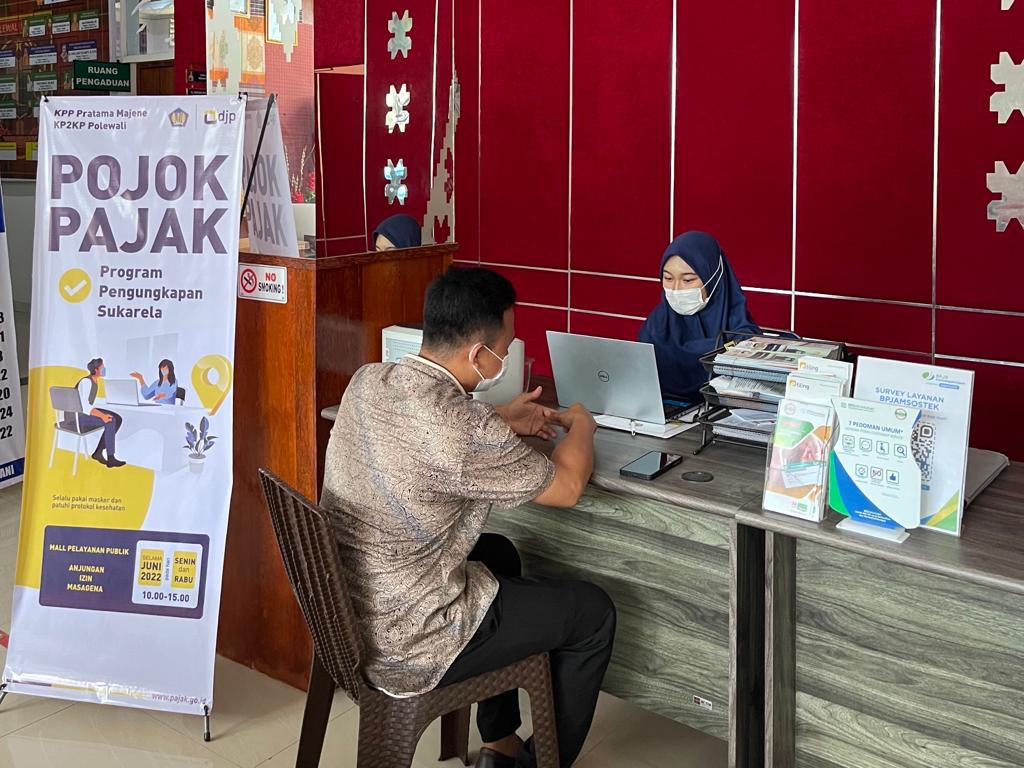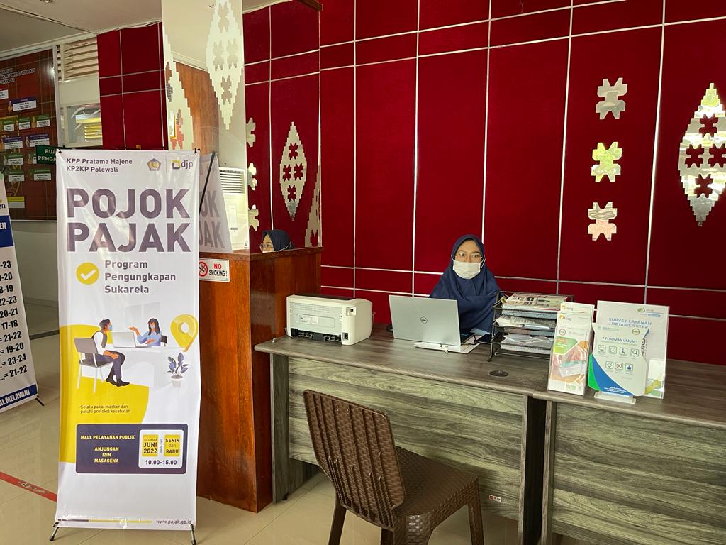 Kantor Pelayanan, Penyuluhan, dan Konsultasi Perpajakan (KP2KP) Polewali membuka Pojok Pajak Program Pengungkapan Sukarela (PPS) di Mall Pelayanan Publik Anjungan Izin Masagena, Kompleks Kantor Bupati Polewali Mandar (Rabu, 15/06).