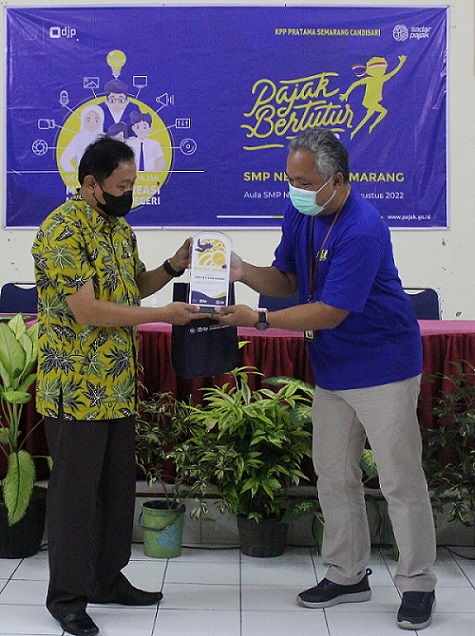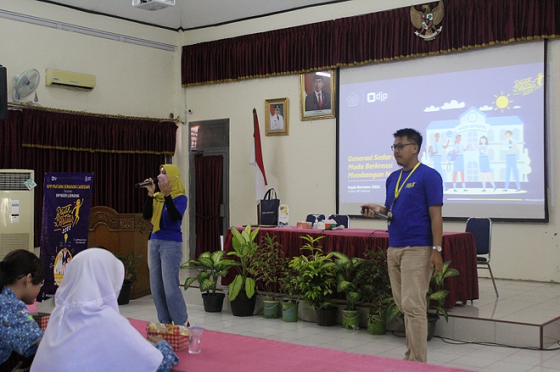 Kantor Pelayanan Pajak (KPP) Pratama Semarang Candisari menggelar Pajak Bertutur 2022 bersama Sekolah Menengah Pertama Negeri (SMPN 5) Semarang secara luring untuk menanamkan kesadaran pajak sejak dini bagi siswa-siswi di Aula SMPN 5 Semarang (Kamis, 18/8).