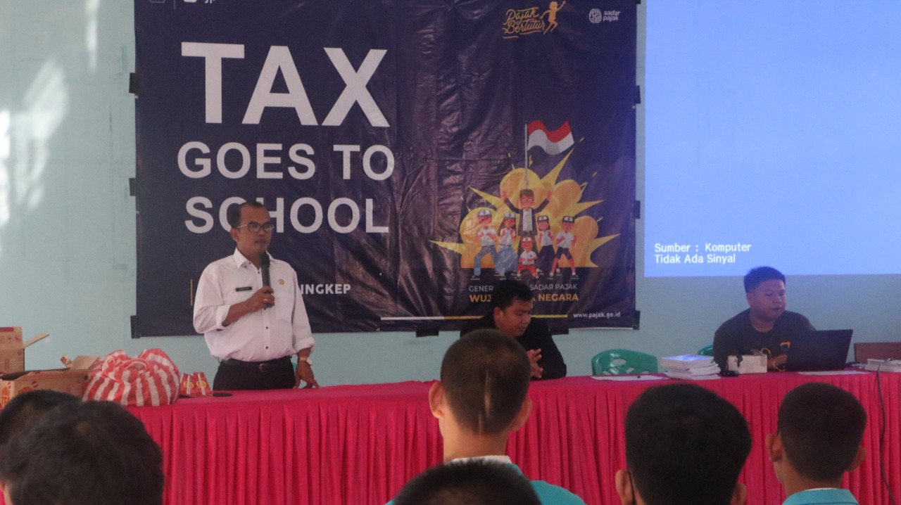 Kantor Pelayanan, Penyuluhan, dan Konsultasi Perpajakan (KP2KP) Dabo Singkep menggelar kegiatan Tax Goes to School (TGTS) di SMK Negeri 1 Singkep, Lingga, Kepulauan Riau (Rabu, 27/7). TGTS ini bertujuan untuk meningkatkan kesadaran pajak pada generasi muda yang akan menjadi Generasi Emas Indonesia di tahun 2045.