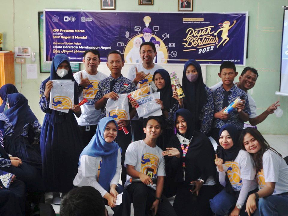Kantor Pelayanan Pajak (KPP) Pratama Maros menggelar kegiatan Pajak Bertutur tahun 2022 yang diadakan di Sekolah Menengah Pertama (SMP) Negeri 5 Mandai (Kamis, 18/8).