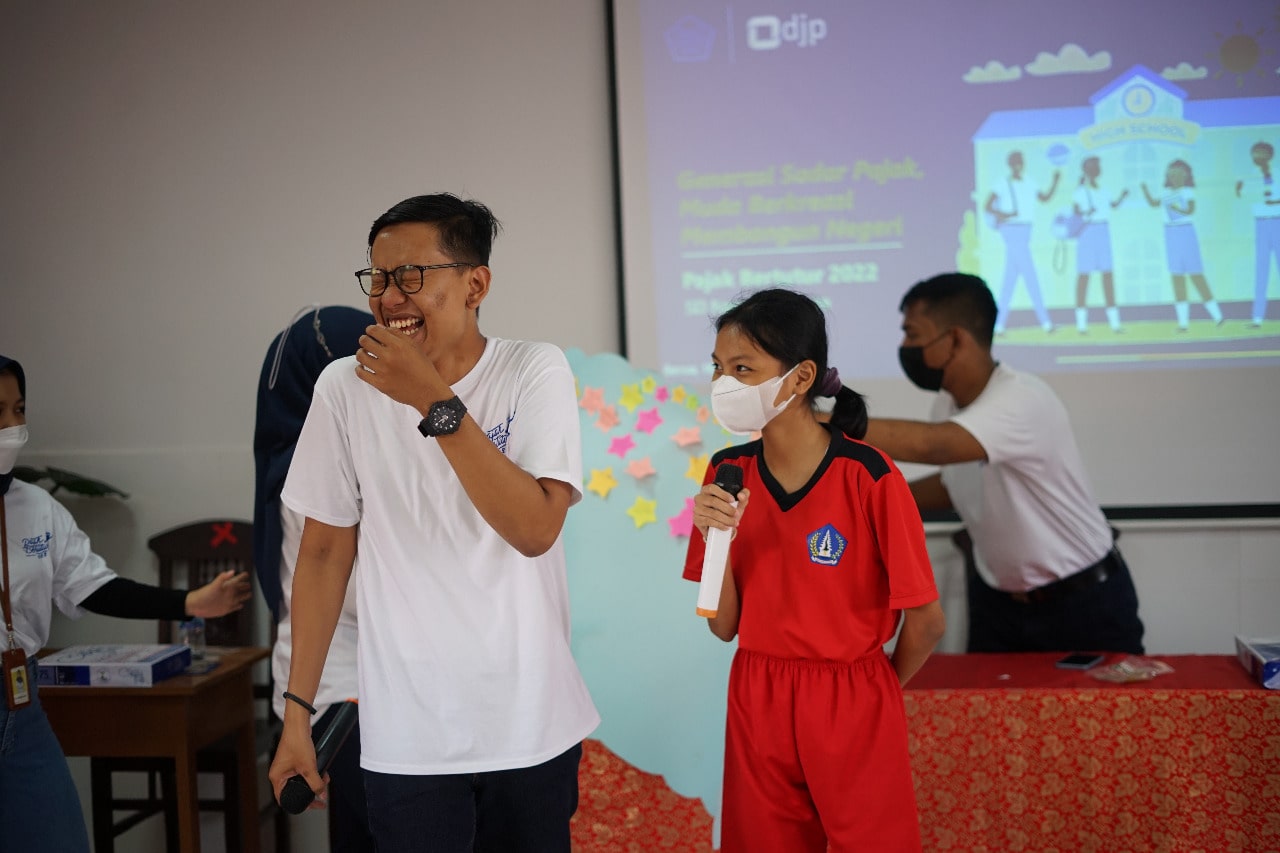 Pada kegiatan kali ini, materi edukasi berupa kesadaran pajak disampaikan oleh Fungsional Penyuluh Pajak Suzane Oktaviani Ulfa. Dalam materinya, Suzanne bercerita mengenai fungsi pajak pada kehidupan sehari-hari dan peran pelajar dalam membangun negara.