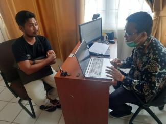 Petugas pengawas pajak Kantor Pelayanan Pajak (KPP) Pratama Parepare memberikan penyuluhan perpajakan terhadap salah satu konsultan pajak di meja helpdesk Kantor Pelayanan, Penyuluhan, dan Konsultasi Perpajakan (KP2KP) Pinrang, Kabupaten Pinrang (Selasa, 13/9). Penyuluhan tersebut membahas tentang peningkatan kepatuhan wajib pajak dalam melaksanakan kewajiban perpajakan.