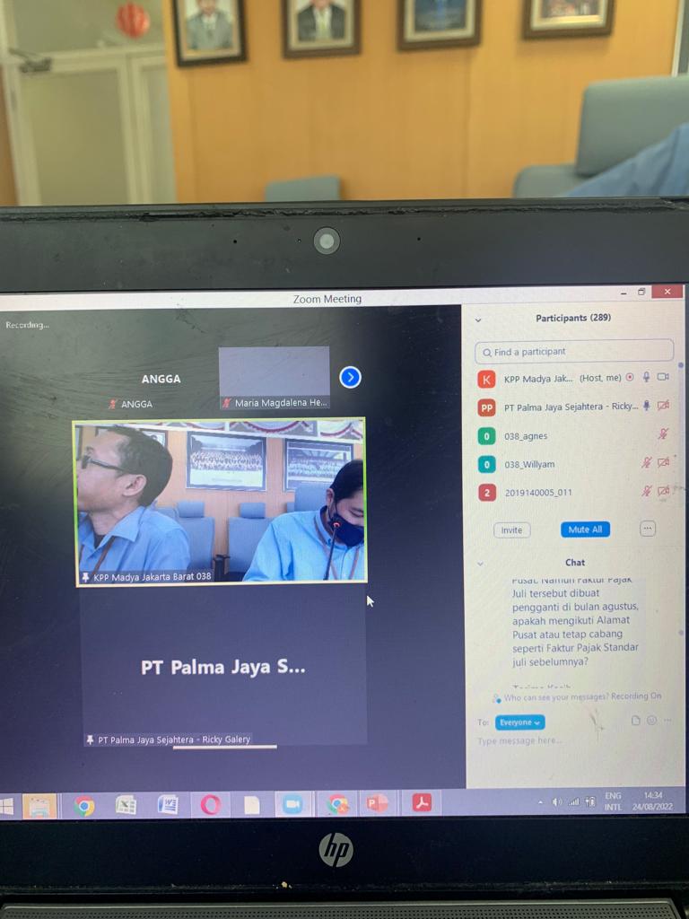 Dalam rangka memastikan lebih banyak wajib pajak yang mendapatkan sosialisasi, Kantor Pelayanan Pajak (KPP) Madya Jakarta Barat mengadakan sesi kedua sosialisasi melalui Zoom Cloud Meeting di ruang rapat lantai 11 KPP Madya Jakarta Barat, Jalan M.I. Ridwan Rais, Jakarta (Rabu, 24/8).