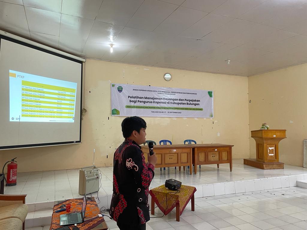 Kantor Pelayanan, Penyuluhan, dan Konsultasi Perpajakan (KP2KP) Tanjung Selor berkesempatan menjadi narasumber dalam program "Pelatihan Manajemen Keuangan dan Perpajakan Pengurus Koperasi di Kabupaten Bulungan” oleh Dinas Perindustrian, Perdagangan, Koperasi, Usaha Kecil dan Menengah (Disperindagkop-UKM) Kabupaten Bulungan di Aula Disperindagkop-UKM Kabupaten Bulungan, Tanjung Selor, Kabupaten Bulungan (Selasa, 18/10).