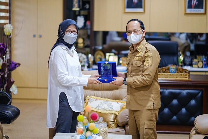 Kepala Kanwil DJP Sumsel dan Kep. Babel Romadhaniah beserta jajaran melakukan audiensi terkait implementasi penggunaan NIK sebagai NPWP kepada Bupati Bangka Tengah Algafry Rahman, Koba, Bangka Tengah (Senin, 9/1).