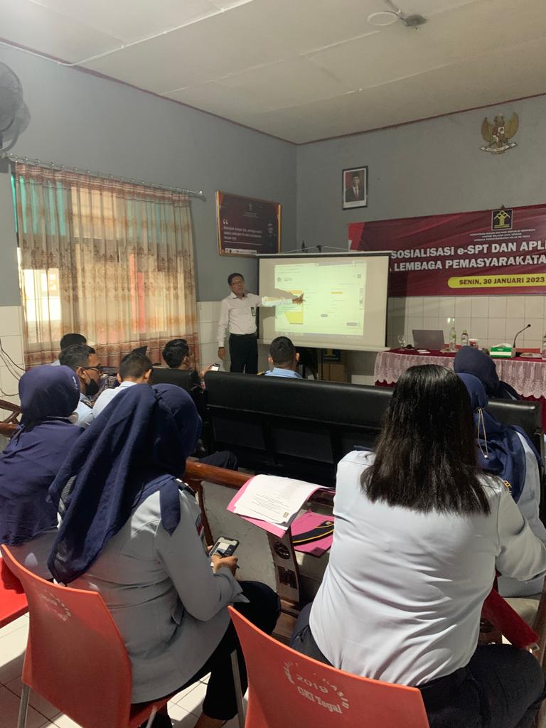 Kantor Pelayanan Pajak (KPP) Pratama Tegal memberikan sosialisasi di Lembaga Pemasyarakatan (Lapas) Kelas IIB Tegal, Kota Tegal (Senin, 30/1). Kegiatan dihadiri puluhan pegawai aktif Lapas Tegal yang terdiri dari Aparatur Sipil Negara (ASN) maupun pegawai nonorganik.