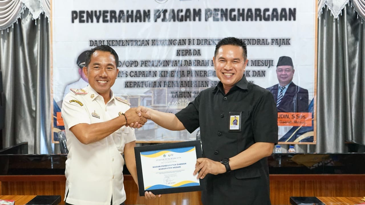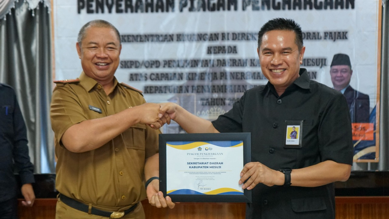 Penghargaan ini diberikan sebagai bentuk apresiasi kepada Pemerintah Kabupaten Mesuji atas dukungan dan kerja sama yang baik dalam rangka penerimaan pajak tahun 2022. penghargaan ini diberikan kepada Pemerintah Daerah Kabupaten Mesuji beserta Organisasi Perangkat Daerah Kabupaten Mesuji antara lain Sekretariat Daerah, Inspektorat Daerah, Badan Pendapatan Daerah, Dinas Pekerjaan Umum dan Penataan Ruang, Dinas Pendidikan, Dinas Kesehatan, Badan Pengelola Keuangan dan Aset Daerah.