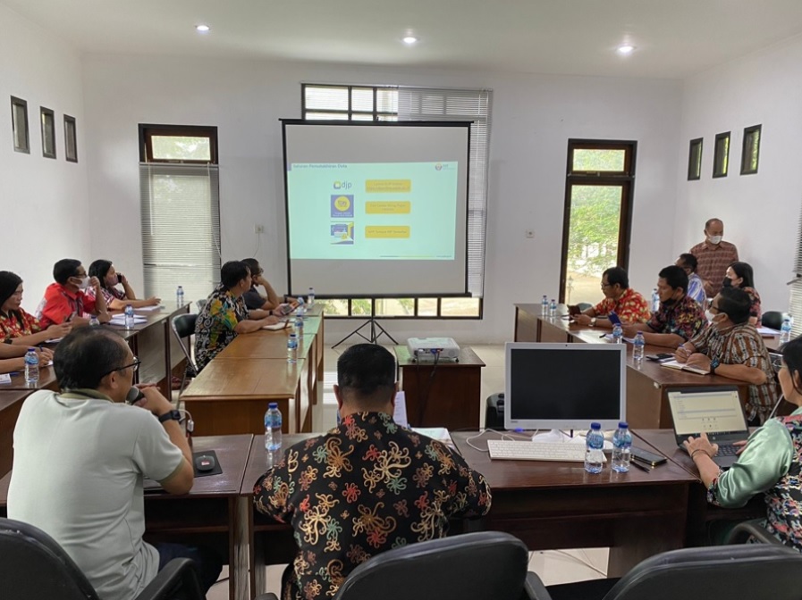 Kepala Kantor Pelayanan, Penyuluhan, dan Konsultasi Perpajakan (KP2KP) Sendawar Andry Hermansyah bersama empat pelaksana KP2KP Sendawar memenuhi Undangan Inspektorat Daerah Pemerintah Kabupaten Kutai Barat dalam rangka penyuluhan pemadanan NIK-NPWP serta pelaporan SPT Tahunan di Gedung Inspektorat Daerah, Kecamatan Barong Tongkok, Kab. Kutai Barat (Kamis, 2/2).