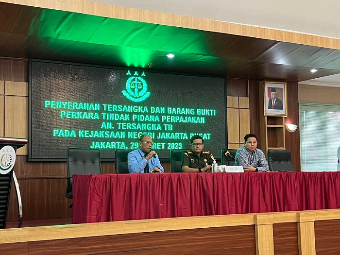 Kanwil DJP Jakarta Pusat melakukan kegiatan penyerahan tersangka dan barang bukti (tahap 2) ke Kejaksaan Negeri Jakarta Pusat atas penyidikan tersangka TB (Rabu, 29/3).