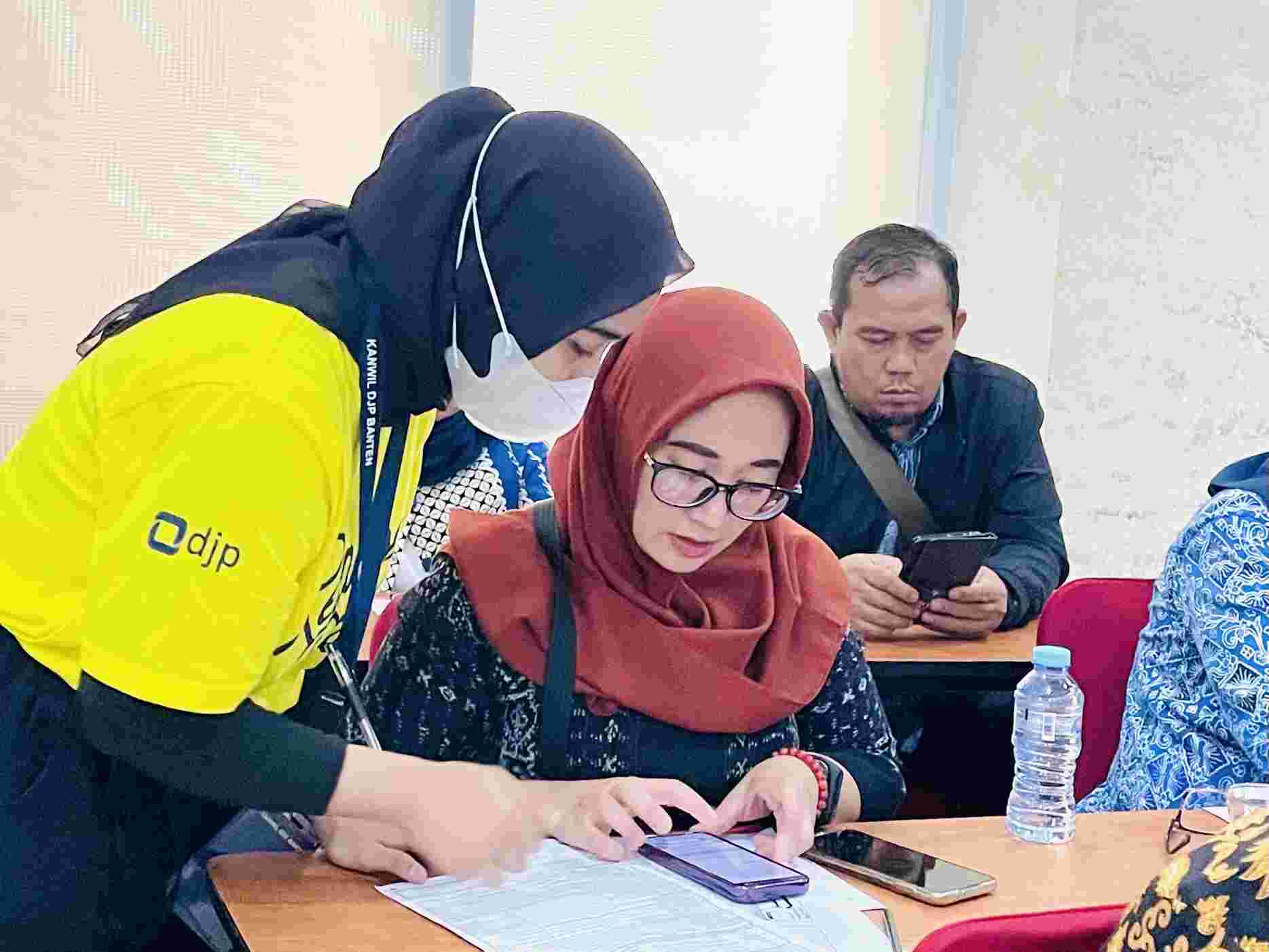 Kantor Pelayanan Pajak (KPP) Pratama Serpong menghadiri undangan dari Badan Pendapatan Daerah (Bapenda) Tangerang Selatan guna memberikan asistensi pelaporan SPT Tahunan di Hotel Marilyn, Serpong (Kamis, 23/2). Kegiatan diikuti oleh 85 Aparatur Sipil Negara (ASN) Bapenda Tangerang Selatan. Tim Penyuluh Pajak KPP Pratama Serpong dibantu Relawan Pajak mengisi jalannya kegiatan asistensi ini.