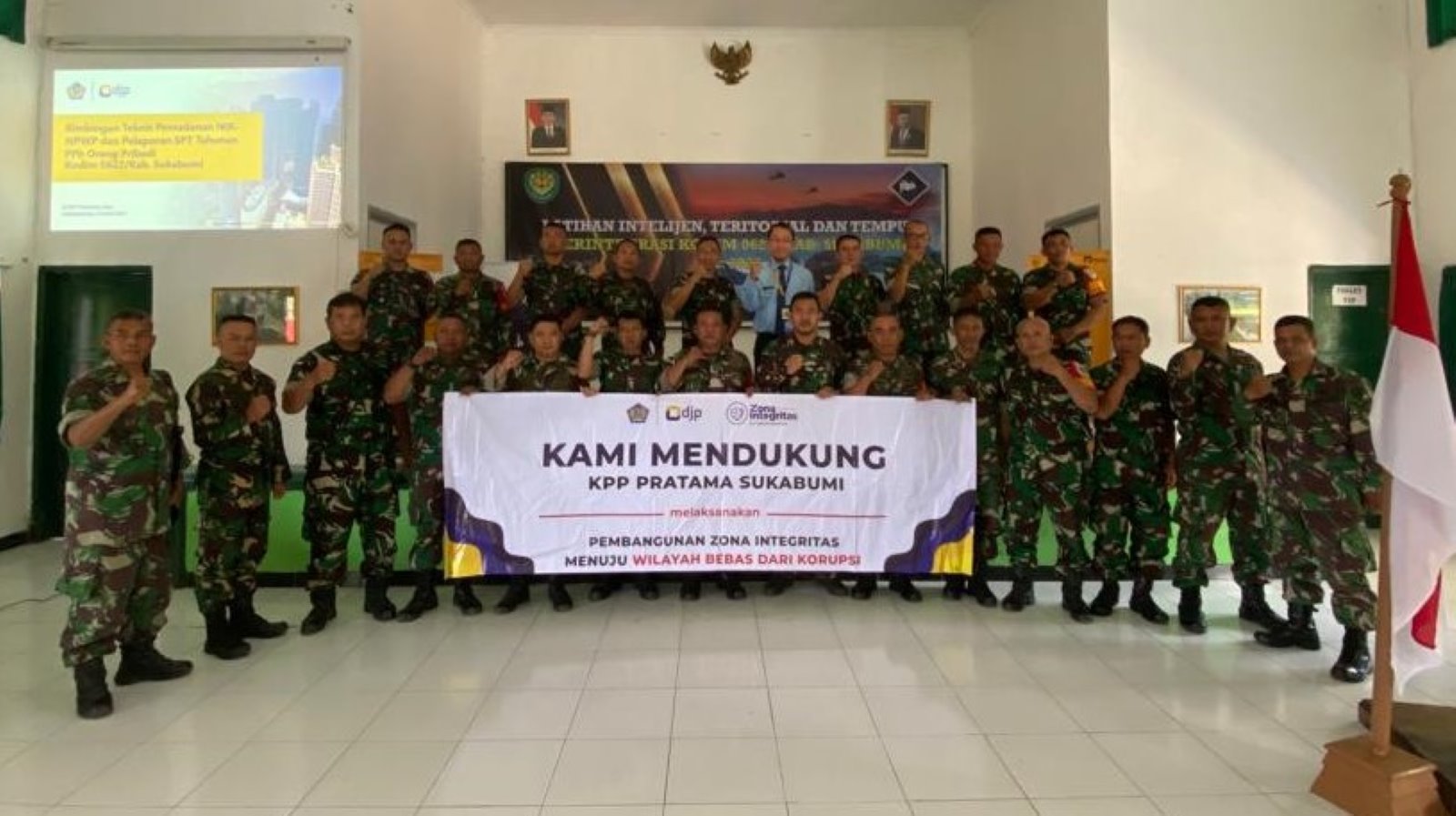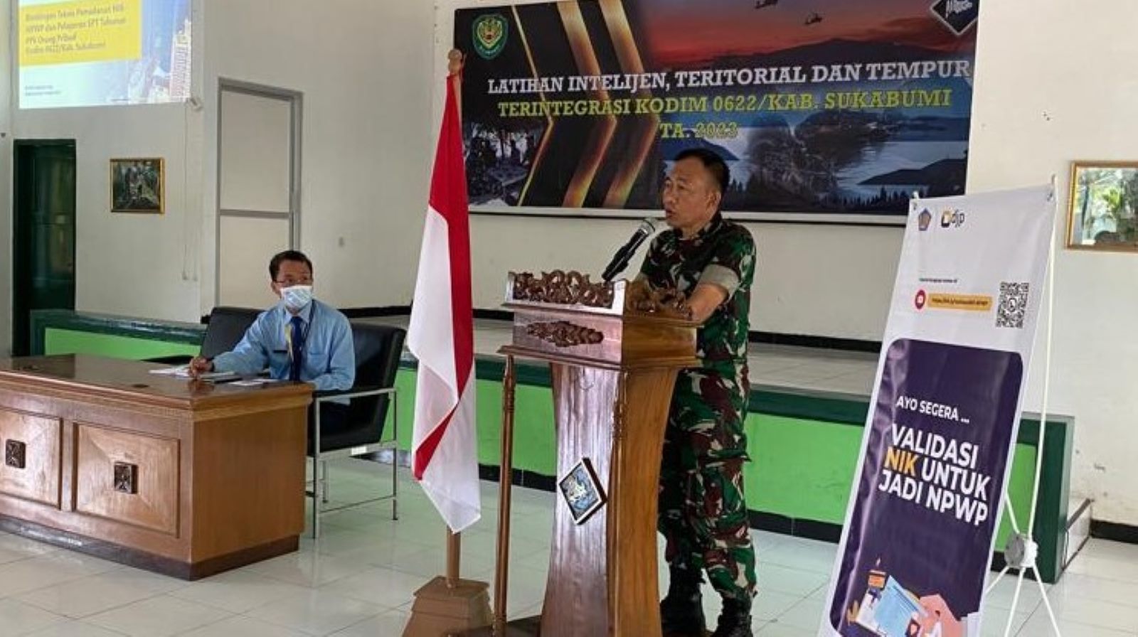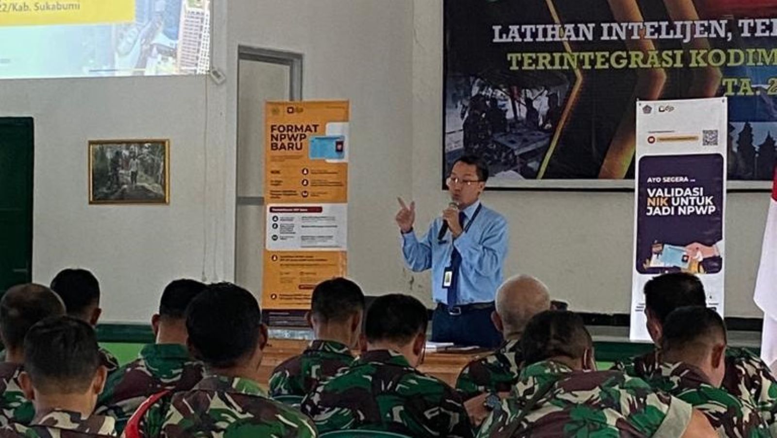 Kantor Pelayanan, Penyuluhan, dan Konsultasi Perpajakan (KP2KP) Pelabuhan Ratu menggelar kegiatan Asistensi Pemadanan Nomor Induk Kependudukan (NIK) sebagai Nomor Pokok Wajib Pajak (NPWP) dan Bimbingan Teknis Penyampaian Surat Pemberitahuan (SPT) Pajak Penghasilan (PPh) secara e-Filing bertempat di aula Markas Komando Distrik Militer (Kodim) 0622/Kabupaten Sukabumi (Rabu, 8/3).