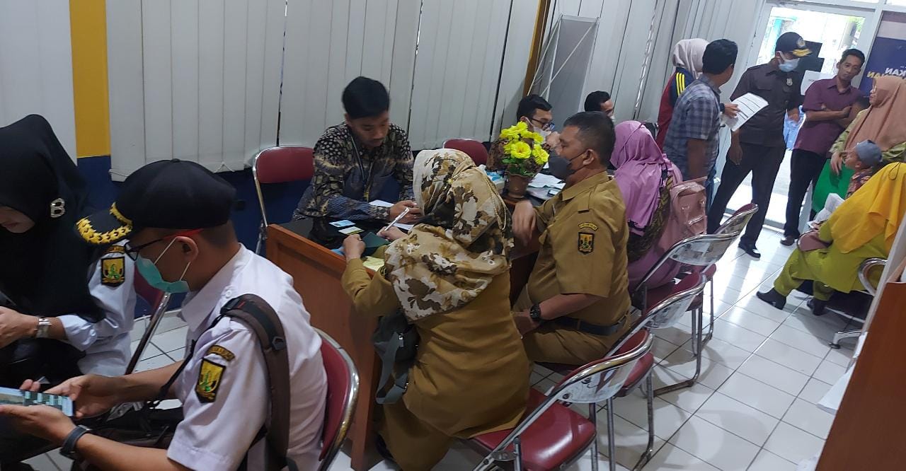 Puluhan guru sekolah melakukan pelaporan Surat Pemberitahuan (SPT) Tahunan PPh Wajib Pajak Orang Pribadi tahun pajak 2022 bersama-sama di aula Kantor Pelayanan, Penyuluhan, dan Konsultasi Perpajakan (KP2KP) Pelabuhan Ratu di Jalan Bhayangkara, Palabuhanratu, Kabupaten Sukabumi (Rabu, 29/3).