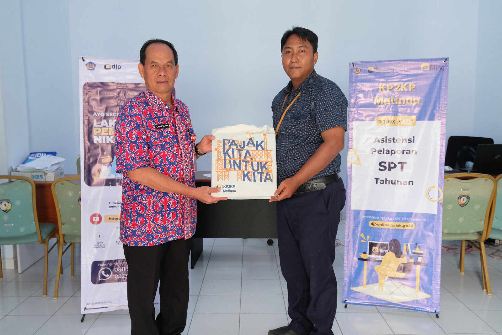 Pelaksana Kantor Pelayanan, Penyuluhan, dan Konsultasi Perpajakan (KP2KP) Malinau mengunjungi Kantor Dinas Ketenagakerjaan (Disnaker) Kabupaten Malinau, Kalimatan Utara (Kamis, 9/3). Bersama Account Representative Kewilayahan Kantor Pelayanan Pajak (KPP) Pratama Tanjung Redeb, kegiatan ini untuk memberikan asistensi cara melaporkan Surat Pemberitahuan (SPT) Tahunan melalui e-Filing dan memadankan Nomor Induk Kependudukan (NIK) menjadi Nomor Pokok Wajib Pajak (NPWP).