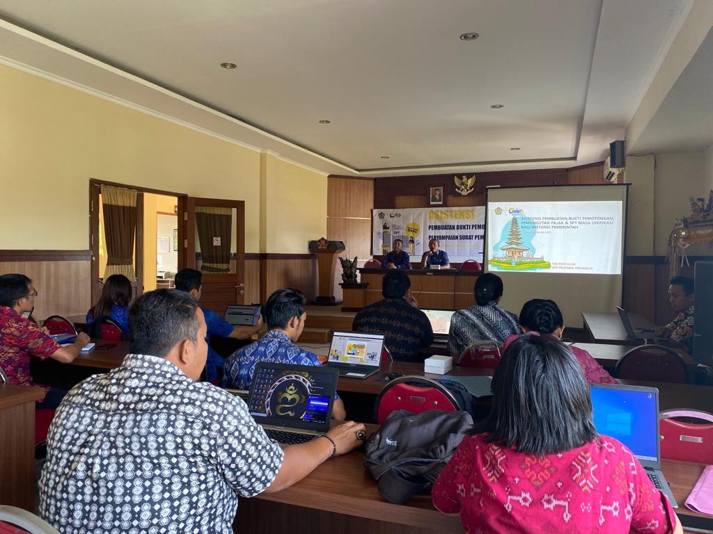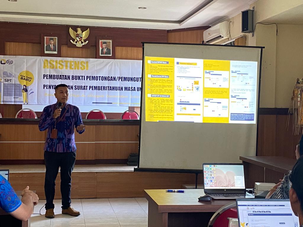 Kantor Pelayanan Pajak (KPP) Pratama Singaraja menggelar acara Asistensi Pembuatan e-Bupot dan Penyampaian SPT Masa Unifikasi di Aula Kantor Kecamatan Sukasada, Kabupaten Buleleng (Selasa, 4/4).