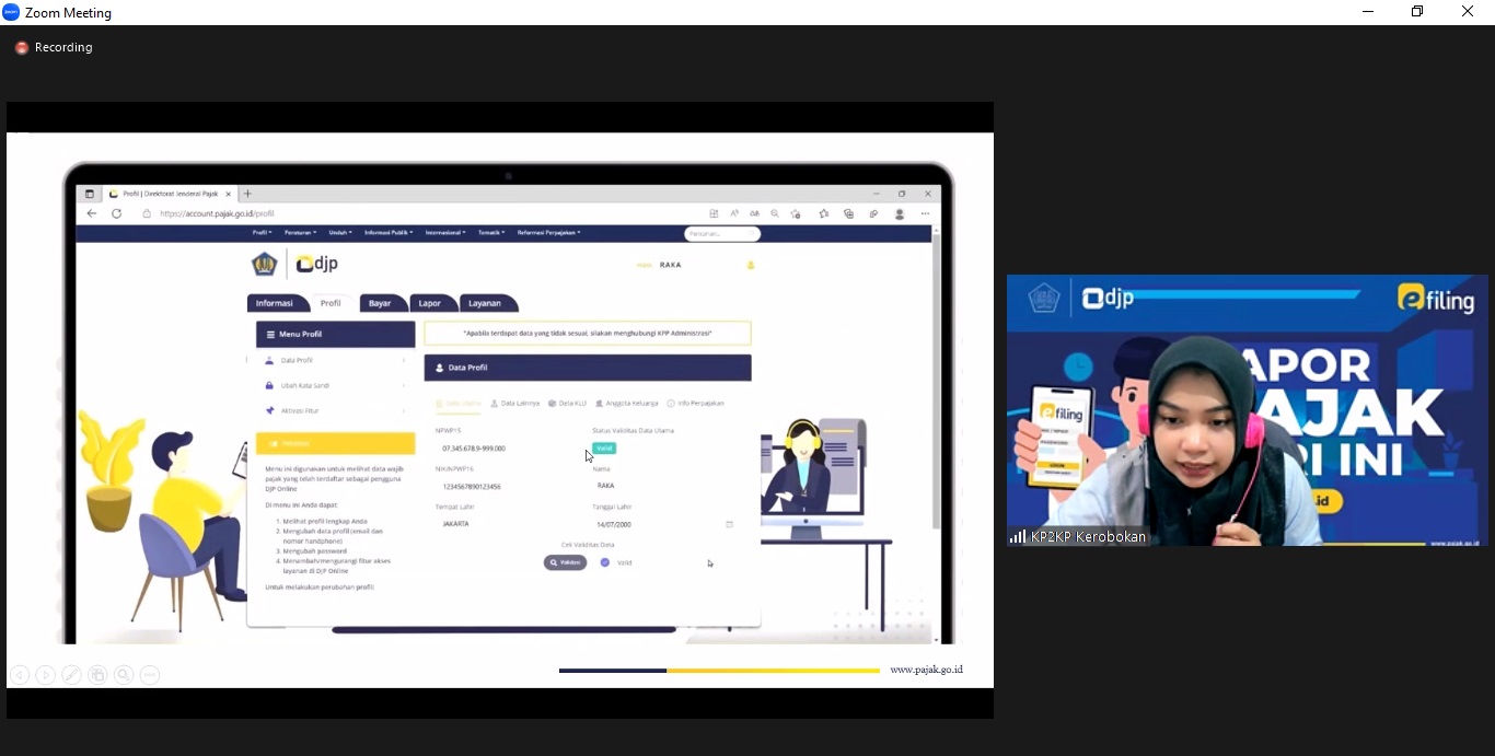 Tujuan pelaksanaan penyuluhan ini adalah untuk mengimbau wajib pajak yang belum melaporkan SPT Tahunan 2022 serta memberikan simulasi tata cara pelaporan SPT Tahunan secara daring melalui e-Filling. Dalam penyuluhan ini, Dviranda Wahyudi selaku pemateri juga mengingatkan wajib pajak untuk melakukan pemadanan Nomor Induk Kependudukan (NIK) dengan Nomor Pokok Wajib Pajak (NPWP). Vira menyampaikan bahwa Pemadanan NIK-NPWP tersebut dapat dilakukan secara daring pada laman pajak.go.id.