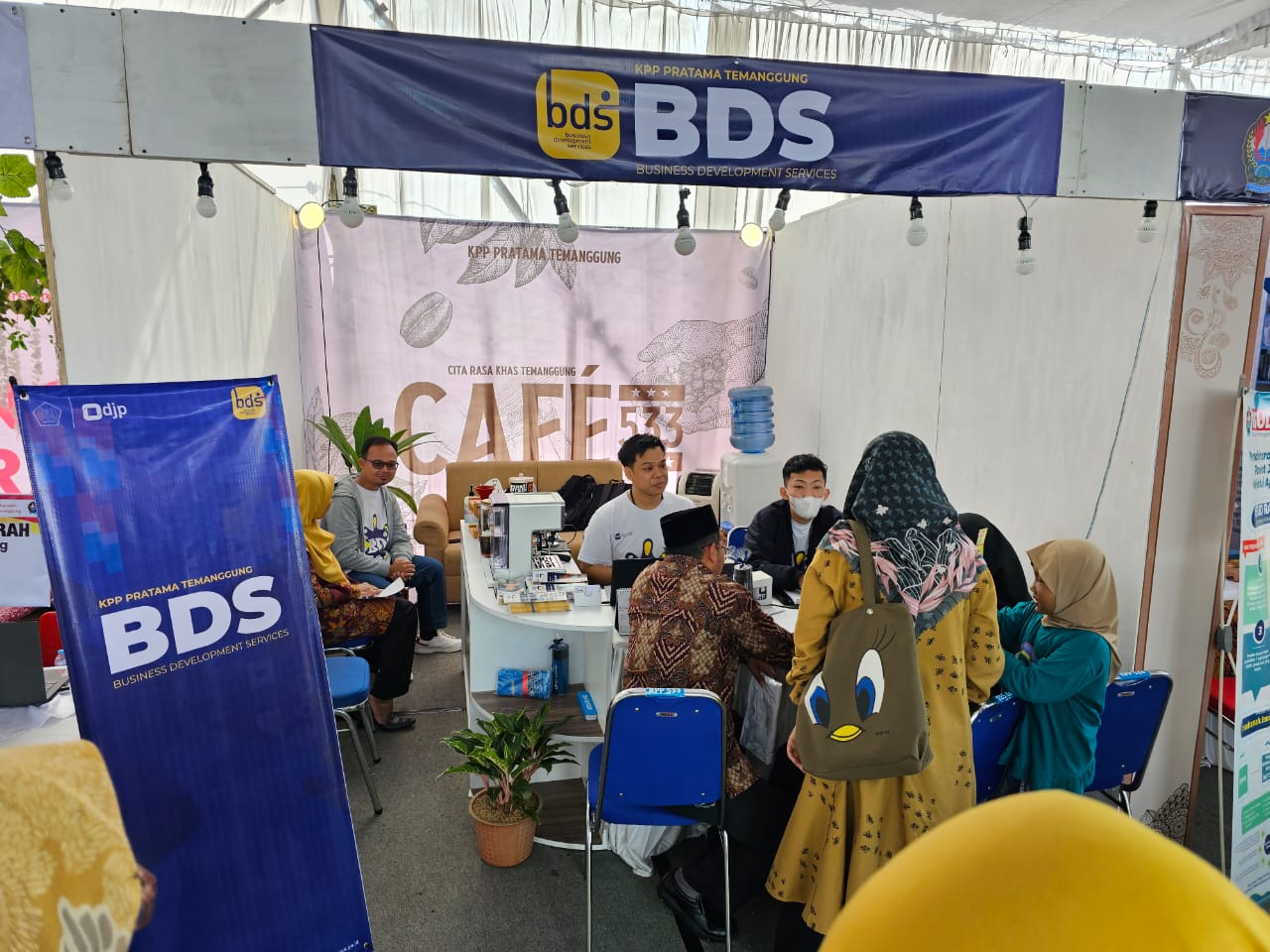 Kantor Pelayanan Pajak (KPP) Pratama Temanggung membuka stand BDS di Temanggung Fest selama lima hari. Stand Bds dibuka mulai tanggal 5 Juli 2023 dan berakhir pada tanggal 9 Juli 2023. BDS Pajak Temanggung hadir untuk memberikan edukasi perpajakan kepada para pelaku UMKM yang mengikuti kegiatan Temanggung Fest.