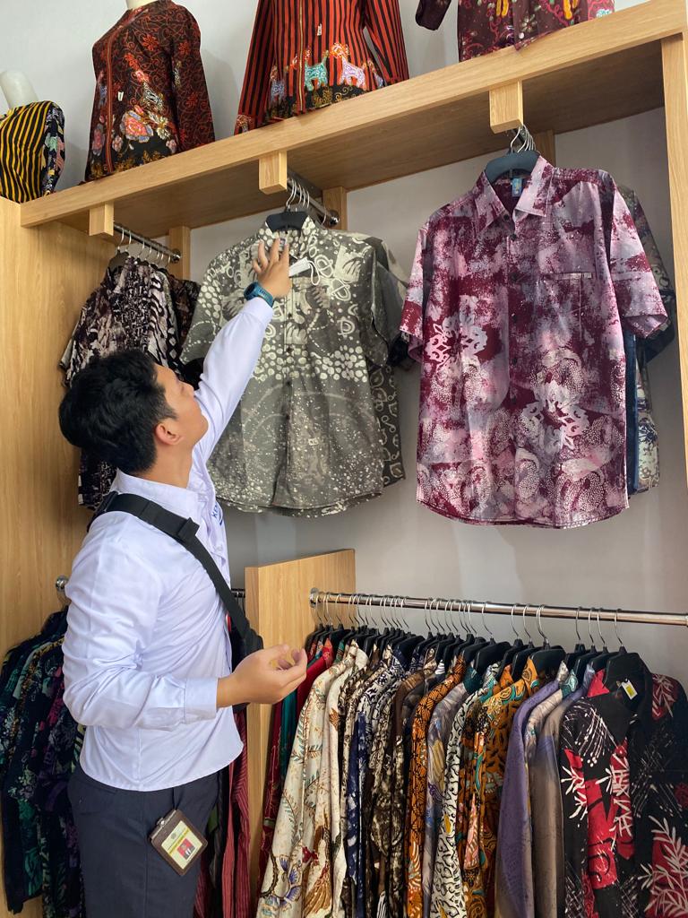 Tim KPP Pratama Semarang Timur Ahid, Rimananda dan Rifandi, disambut oleh Oktavia Ningrum selaku pemilik usaha Batik Temawon sekaligus sekretaris paguyuban batik di Kampung Batik Kota Semarang.