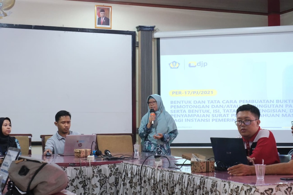Agenda penyuluhan ini dihadiri oleh bendahara instansi pemerintah terkait. Materi penyuluhan ini sesuai dengan Peraturan Direktorat Jenderal Pajak Nomor PER-17/PJ/2021 tentang Bentuk dan Tata Cara Pembuatan Bukti Pemotongan dan/atau Pemungutan Pajak, Serta Bentuk, Isi, Tata Cara Pengisian, dan Penyampaian Surat Pemberitahuan Masa Bagi Instansi Pemerintah.