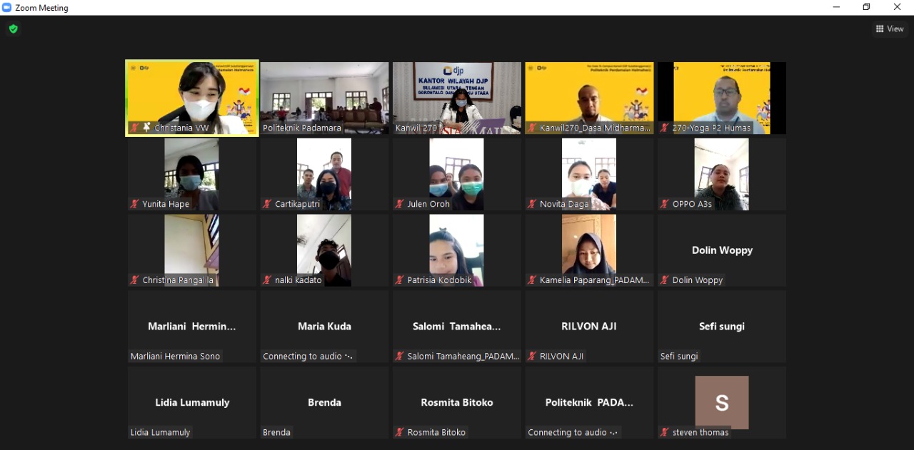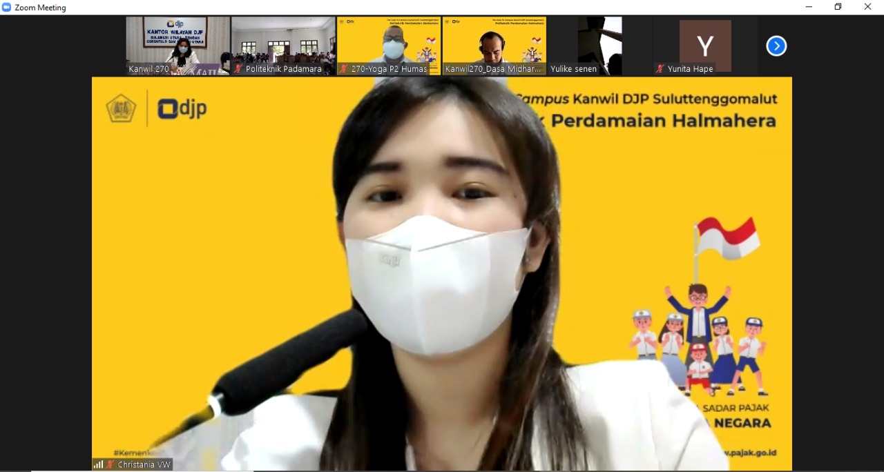Acara TGTC kali ini mengusung tema “Generasi Muda Sadar Pajak Wujud Bela Negara”. Kegiatan yang dilakukan secara daring melalui Zoom Cloud Meeting dari ruang rapat Kanwil DJP Suluttenggomalut, Manado.