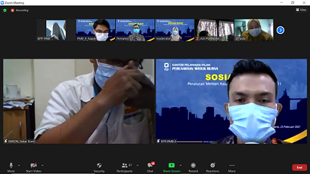 Materi disampaikan oleh tim penyuluh perpajakan KPP PMB. Paparan materi yang disampaikan terkait Peraturan Menteri Keuangan Nomor 9/PMK.03/2021 tentang Insentif Pajak untuk Wajib Pajak Terdampak Pandemi Corona Virus Disease 2019.