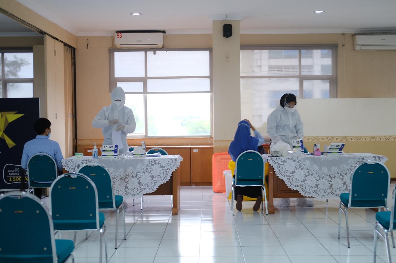 Kanwil DJP Jawa Barat II bekerja sama dengan Parahita Diagnostic Center mengadakan tes usap antigen untuk seluruh pegawainya di aula Kanwil DJP Jawa Barat II, jalan Ahmad Yani No. 5, Bekasi (Rabu, 17/2).