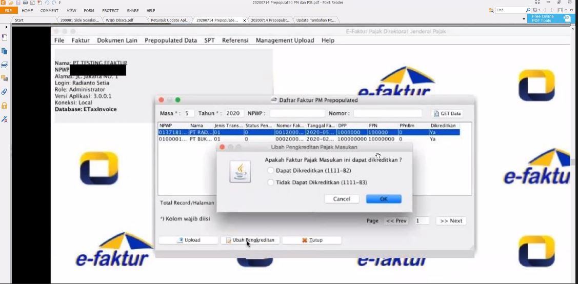 Edukasi ini terbagi dalam dua sesi yang berlangsung selama dua hari yakni Selasa, 22 September 2020 dan Kamis, 24 September 2020. Mengusung materi e-Faktur, Tim Penyuluhan dan Konsultasi KPP PMA Tiga menyampaikan pembaruan dan teknis e-Faktur versi terbaru ini.