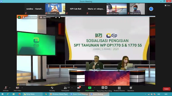 Kantor Wilayah Direktorat Jenderal Pajak (Kanwil DJP) Bali bekerja sama dengan Ikatan Konsultan Pajak Indonesia (IKPI) Cabang Bali mengadakan kelas pajak SPT Tahunan bersama secara daring melalui media Zoom (Jumat, 5/3). Acara ini diikuti oleh 240 peserta yang berasal dari masyarakat umum dan anggota IKPI. Kegiatan ini merupakan salah satu bentuk kegiatan relawan pajak Kanwil DJP Bali.