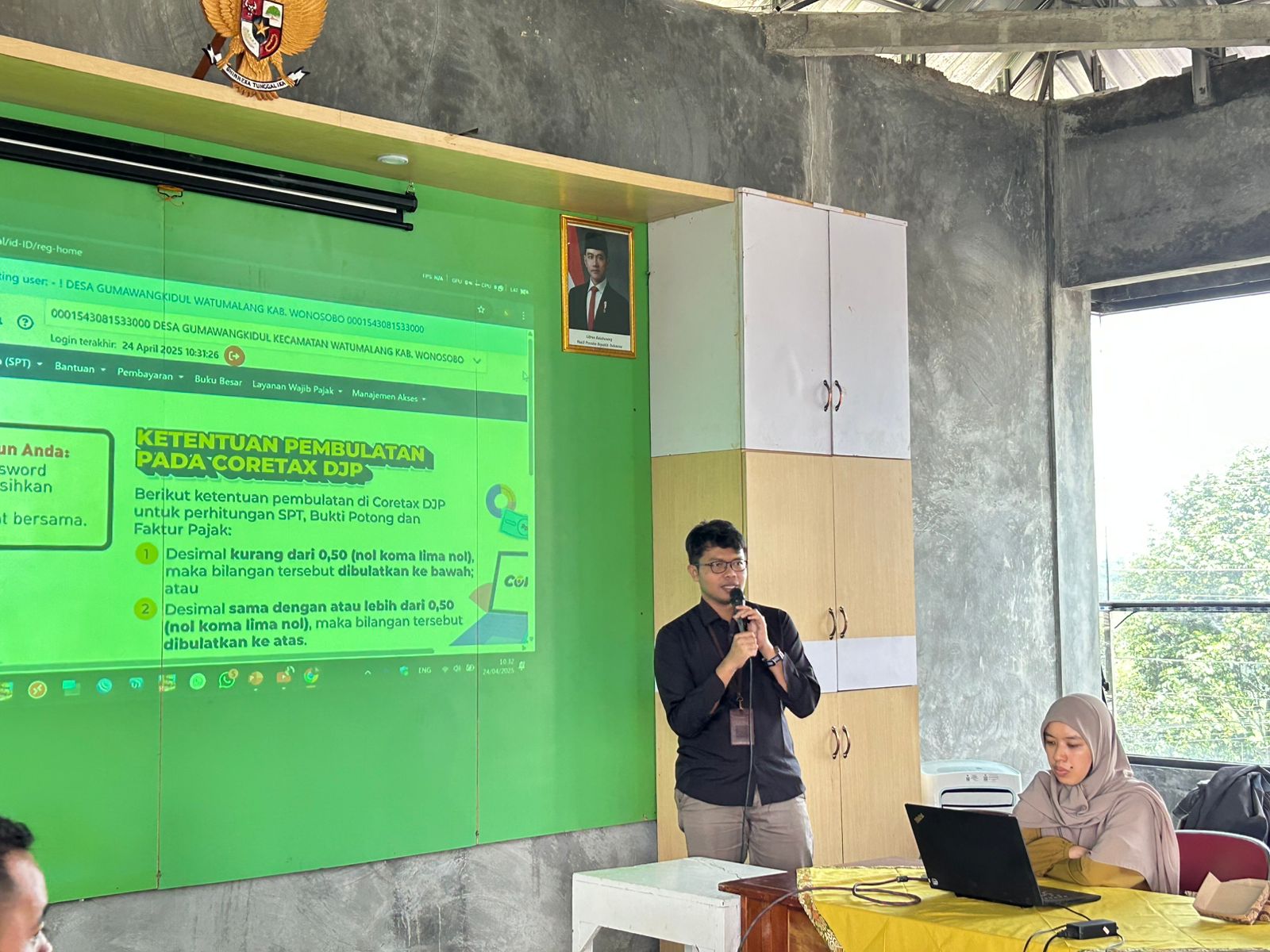 “Mulai 1 Januari 2025, seluruh administrasi perpajakan instansi pemerintah, termasuk desa pengguna dana APBDesa, wajib menggunakan Coretax DJP. Karena sebagian besar peserta sudah bisa login, nanti kita praktik langsung pembuatan kode billing, e-Bupot, dan pelaporan SPT Masa yang biasa dilakukan oleh desa,” kata Yogi Purwoko, Account Representative (AR) KPP Pratama Temanggung, saat membuka acara.