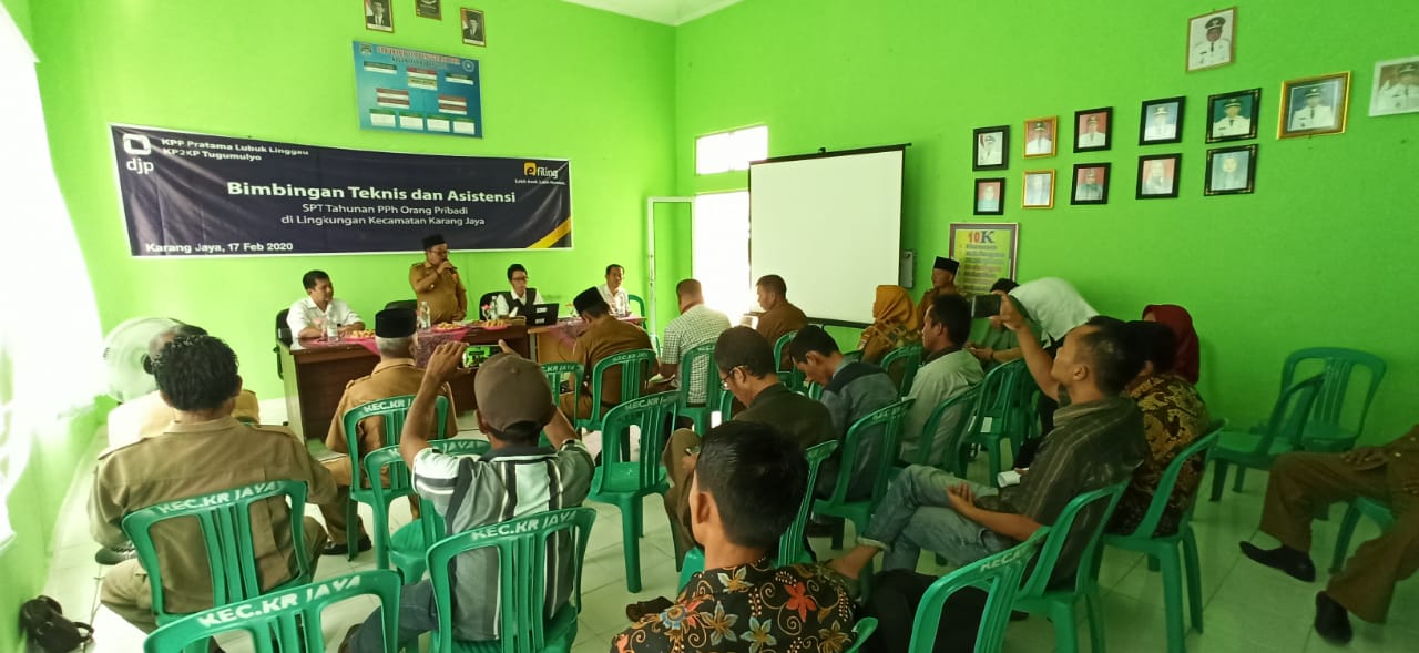 Tim penyuluh KPP Pratama Lubuk Linggau bekerja sama dengan KP2KP Tugu Mulyo melakukan kegiatan asistensi SPT Tahunan PPh Orang Pribadi di kantor DPRD Musi Rawas Utara dan kantor Kecamatan Karang Jaya, Kabupaten Musi Rawas Utara (Muratara) (Senin, 17/2).
