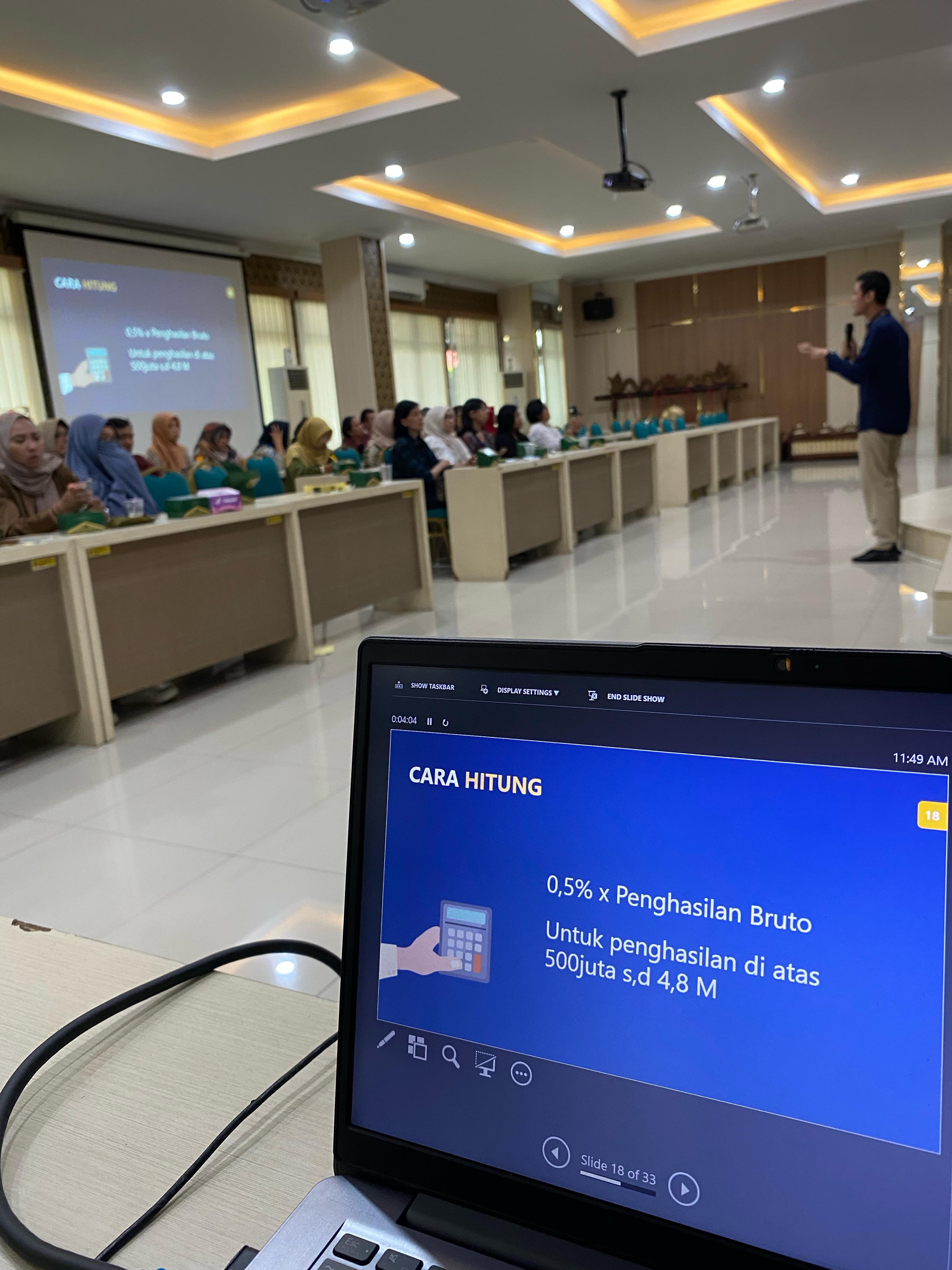 Materi yang mereka sampaikan adalah terkait kewajiban perpajakan bagi UMKM, yang salah satu poin utamanya menurut mereka, yaitu sistem perpajakan self assessment sehingga pelaku usaha dapat mencatat penghasilan bruto setiap bulan, membayar, dan melaporkan pajak melalui SPT Tahunan secara mandiri.