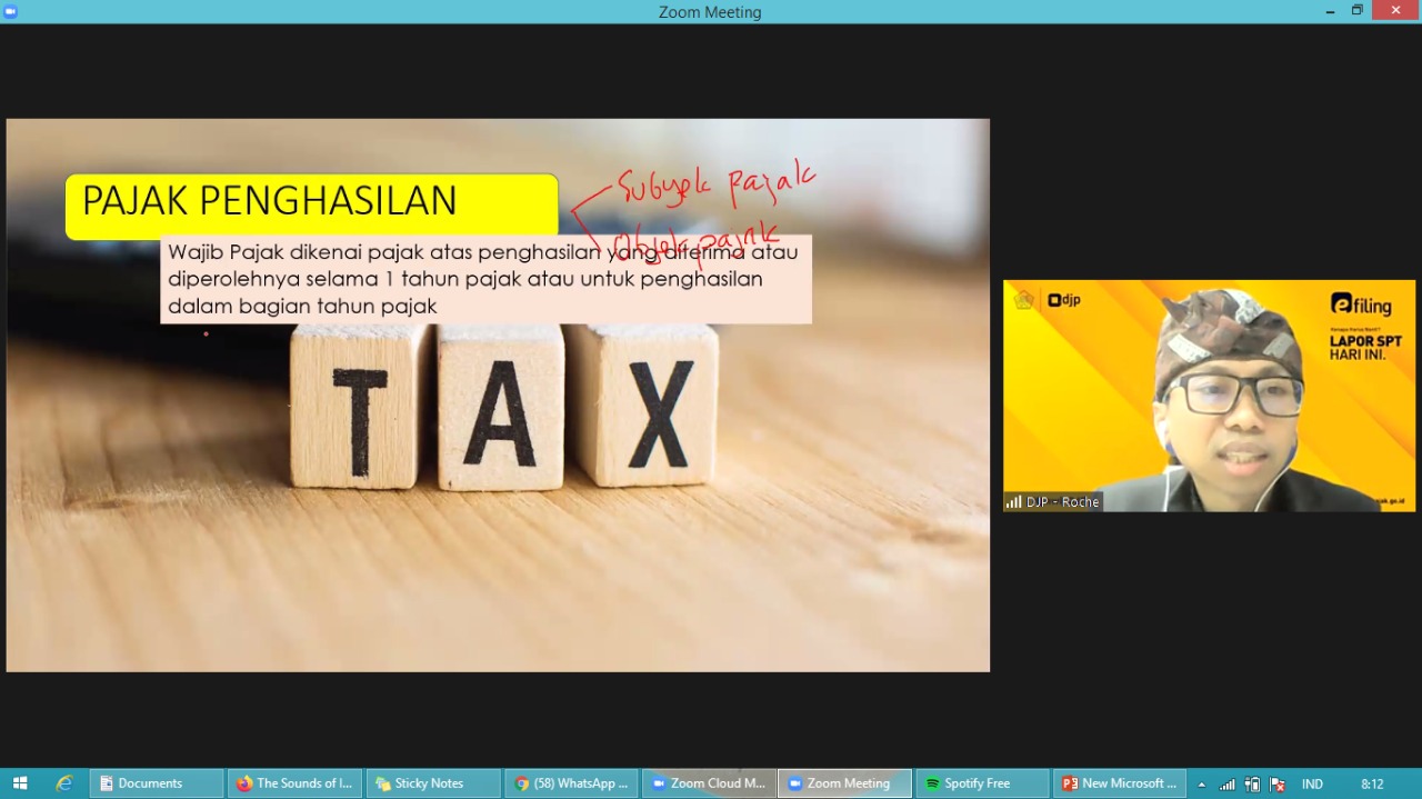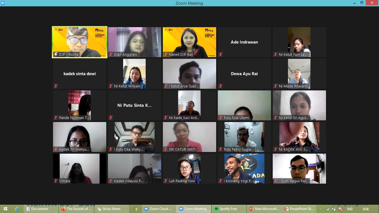 Dalam rangka pelaksanaan kegiatan relawan pajak, Kantor Wilayah Direktorat Jenderal Pajak Bali (Kanwl DJP Bali) memberikan pelatihan kepada relawan pajak Universitas Pendidikan Ganesha (Undiksha) Singaraja melalui media Zoom (Kamis, 11/2).