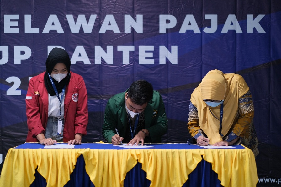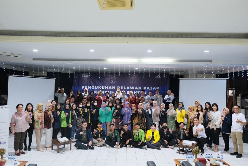 Kanwil Direktorat Jenderal Pajak (DJP) Banten melaksanakan pengukuhan 686 relawan pajak tahun 2023 secara hybrid dengan menghadirkan dosen dan mahasiswa sebagai relawan pajak mahasiswa dan non mahasiswa dari 20 kampus se-Provinsi Banten di aula Kanwil DJP Banten, Kota Serang (Jumat, 13/1).