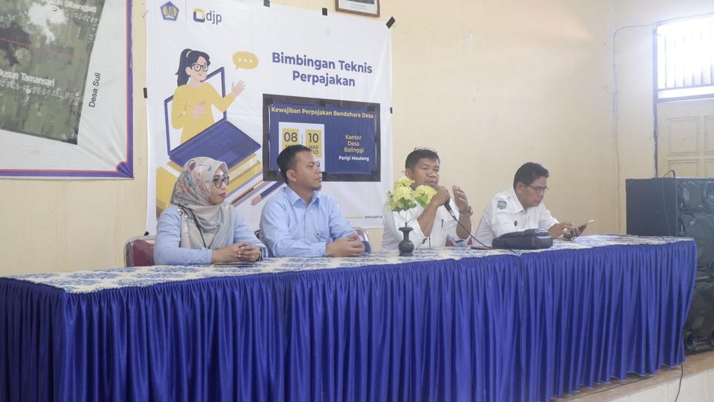 Kantor Pelayanan Pajak (KPP) Pratama Palu bersama Kantor Pelayanan, Penyuluhan, dan Konsultasi Perpajakan (KP2KP) Parigi mengadakan Bimbingan Teknis Kewajiban Perpajakan Bendahara Kecamatan Balinggi di Kantor Kantor Desa Balinggi, Kabupaten Parigi Moutong (Rabu, 8/3).