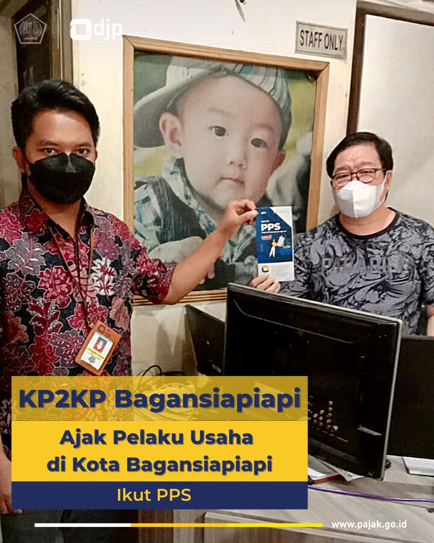 “Program PPS ini adalah kabar baik bagi para stakeholder terutama para pelaku usaha. Demi mensukseskan program ini, KP2KP Bagansiapiapi berusaha untuk menyebarkan informasi PPS dengan cara berkeliling dan membagikan leaflet door to door ke lokasi para stakeholder,”jelas Lasro Supiatman Siahaan, Kepala KP2KP Bagansiapiapi.