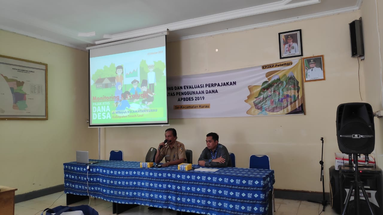 KP2KP Pelaihari bersinergi dengan Kantor Kecamatan Kurau menggelar kegiatan Monitoring dan Evaluasi (Monev) Perpajakan atas Pengelolaan APBDesa Tahun Anggaran 2019 di Aula Kantor Kecamatan Kurau, Kabupaten Tanah Laut, Kalimantan Selatan (Kamis, 15/10).