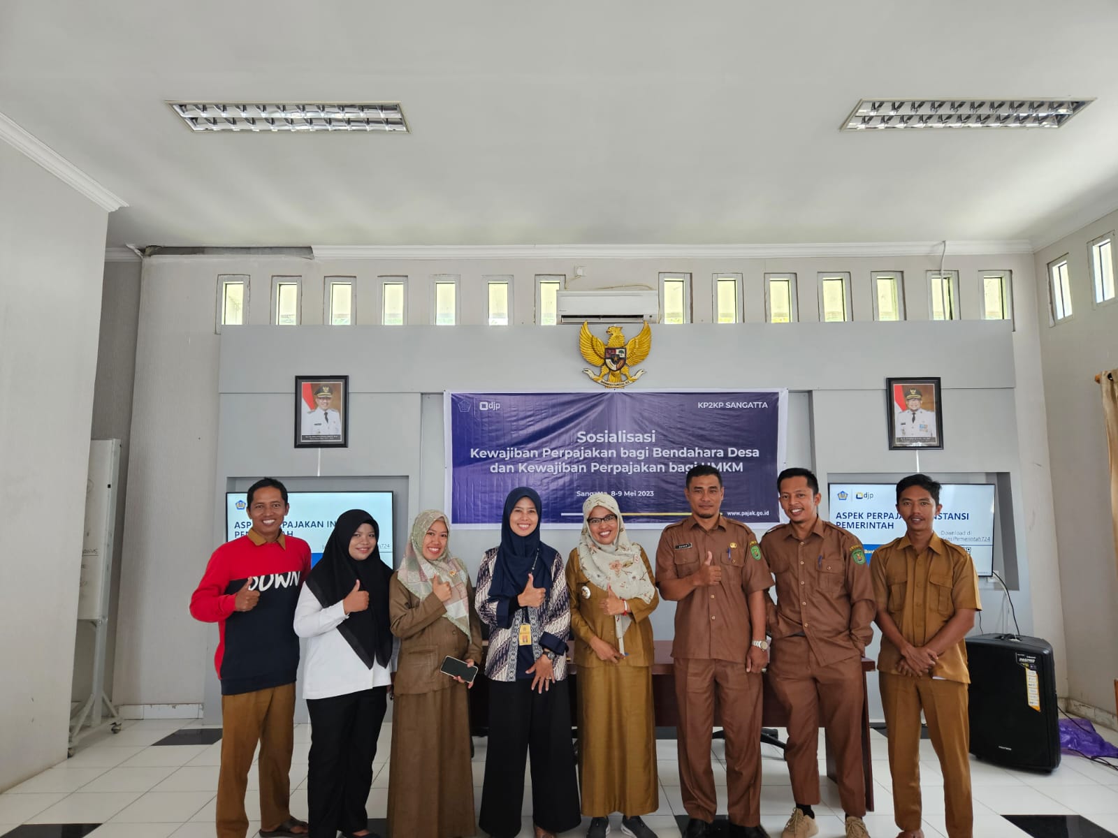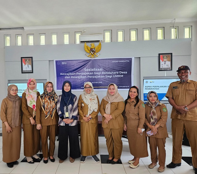 Bertempat di Ruang Pertemuan Kecamatan Sangatta Utara, Kantor Pelayanan, Penyuluhan, dan Konsultasi Perpajakan (KP2KP) Sangatta bekerja sama dengan Kantor Pelayanan Pajak (KPP) Pratama Bontang dan Kecamatan Sangatta Utara menggelar kegiatan sosialisasi kewajiban perpajakan bagi bendahara desa di Kab. Kutai Timur (Selasa, 9/5).
