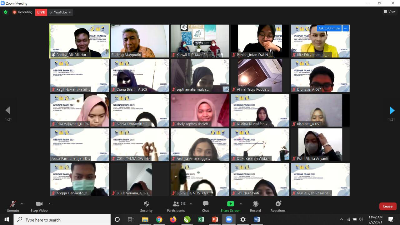 Tax Center Universitas Singaperbangsa Karawang mengadakan Webinar Perpajakan dengan tema “Kupas Tuntas UU Cipta Kerja Kluster Perpajakan" di Karawang (Selasa, 2/2). Dalam webinar ini menghadirkan narasumber dari Kantor Wilayah DJP Jawa Barat II. Wakil Rektor Unsikka DR. Kusrin, M.Pd dalam sambutannya menyampaikan pihak akademisi menyambut baik terbitnya UU Cipta Kerja yang diharapkan dapat membantu Pemulihan Ekonomi Nasional.