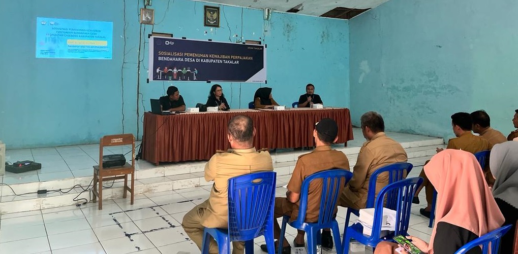 Kantor Pelayanan, Penyuluhan, dan Konsultasi Perpajakan (KP2KP) Takalar bersama asisten penyuluh dan Account Representative Kantor Pelayanan Pajak (KPP) Pratama Bantaeng mengadakan sosialiasi pemenuhan kewajiban perpajakan bendahara desa bertempat di Aula Kantor Kecamatan Galesong Kabupaten Takalar (Selasa, 9/5). Kegiatan sosialisasi dihadiri oleh 40 peserta yang terdiri dari kepala desa dan bendahara desa yang berasal dari 17 desa di bawah kecamatan Galesong.
