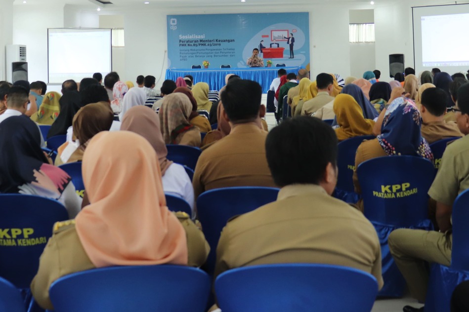 Kantor Pelayanan Pajak (KPP) Pratama Kendari, Kanwil DJPB Sultra dan Kantor Pelayanan, Penyuluhan, Dan Konsultasi Perpajakan (KP2KP) Unaaha menggelar sosialisasi Peraturan Perpajakan pada Aparat Pengawas Intern Pemerintah (APIP) di lingkungan Kota Kendari dan sekitarnya (Selasa, 15/10). Berlangsung di aula KPP Pratama Kendari, acara ini diawali dengan pemaparan materi terkait DAU Provinsi Sultra yang disampaikan oleh Kanwil DJPB Sultra.