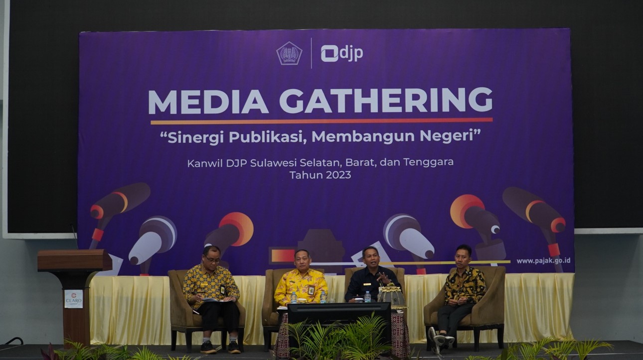 Kantor Wilayah Direktorat Jenderal Pajak Sulawesi Selatan, Barat, dan Tenggara (Kanwil DJP Sulselbartra) menyelenggarakan kegiatan riung media (media gathering) tahun 2023 dengan tema “Sinergi Publikasi, Membangun Negeri” di Mahoni Hall Hotel Claro, Jalan A. P. Pettarani Nomor 3, Kelurahan Mannuruki, Kecamatan Tamalate, Kota Makassar, Sulawesi Selatan (Selasa, 10/10).