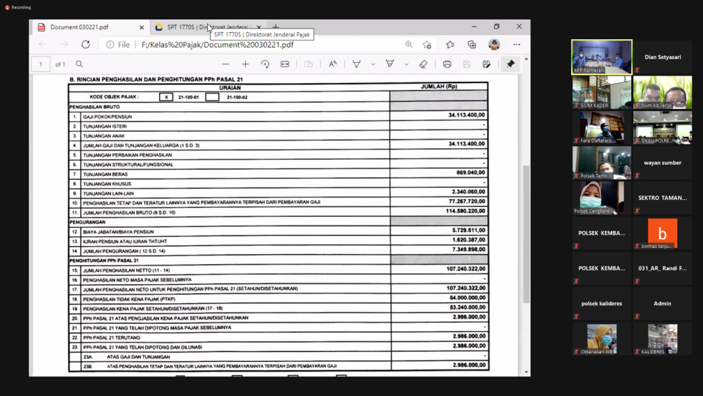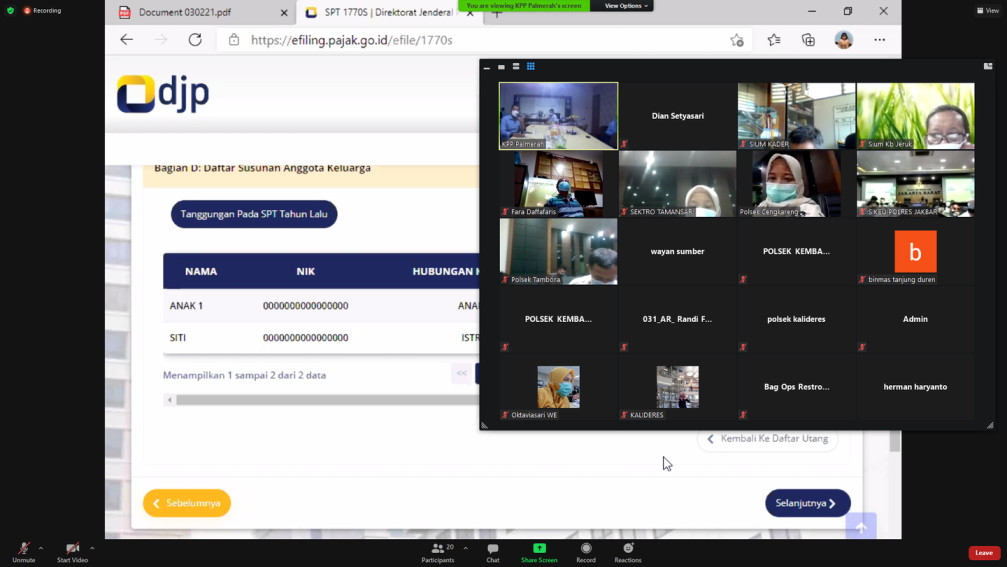Mengawali Tahun 2021, KPP Pratama Jakarta Palmerah mengadakan Sosialisasi Pengisian Surat Pemberitahuan (SPT) Tahunan secara daring melalui aplikasi Zoom Meeting kepada pegawai Polres Jakarta Barat di Jakarta (Rabu, 3/2).
