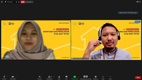 Kantor Wilayah Direktorat Jenderal Pajak (Kanwil DJP) Banten melaksanakan kegiatan Bincang Akuntansi Pajak seri IV melalui aplikasi Zoom Cloud Meeting yang dihadiri oleh 60 peserta dari mahasiswa, dosen, dan para peserta magang di Kanwil DJP Banten yang dimulai pukul 13.30 WIB di Kota Serang, Banten (Kamis, 7/10).